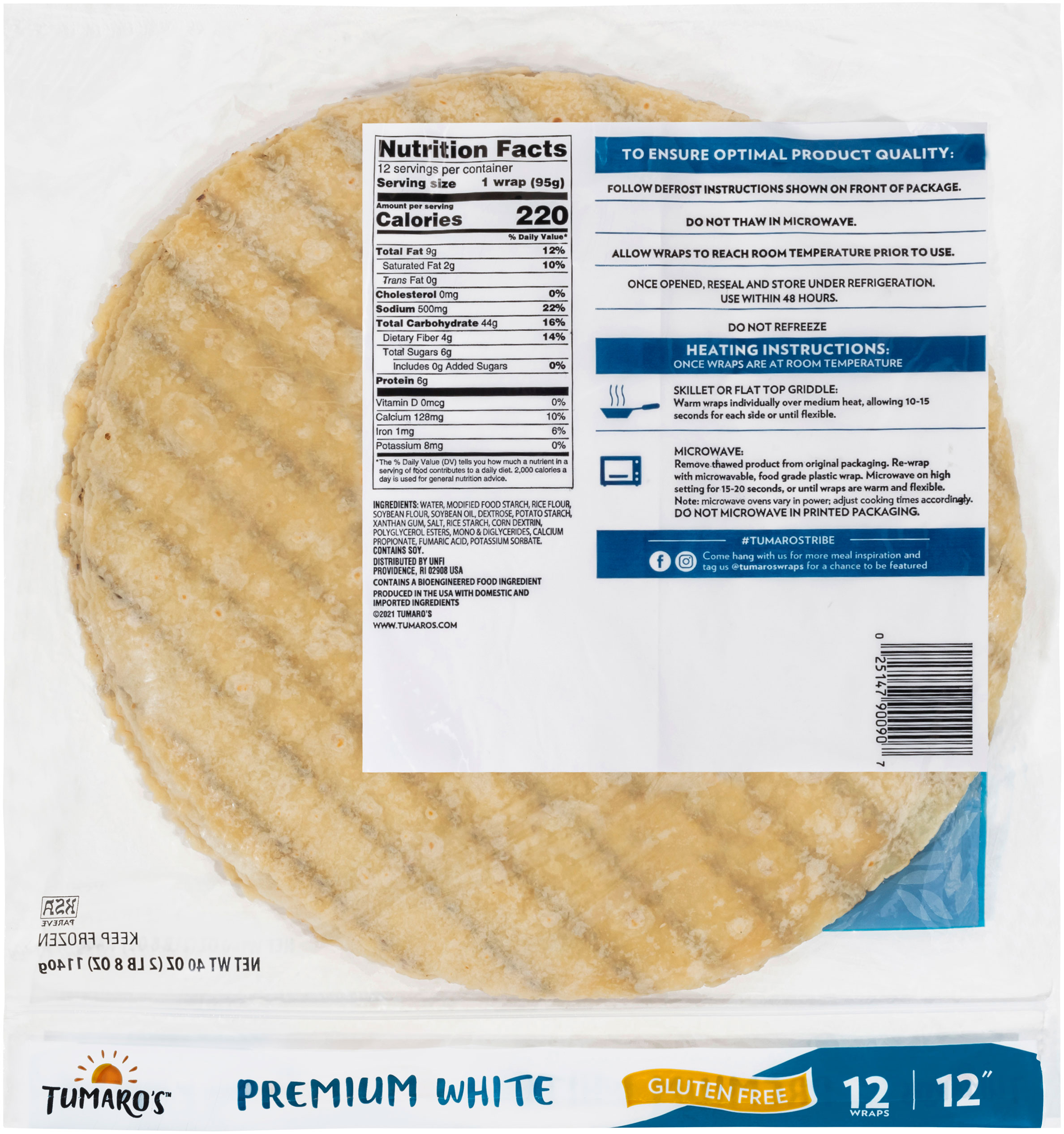 TUMARO’S 12 inch gluten free wraps for those signature ingredients you and your customers are sure to love. Now featuring appetizing grill marks so your creations will look as good as they taste. Think outside the sandwich! There are many ways to prepare TUMARO’S wraps other than the usual suspects.